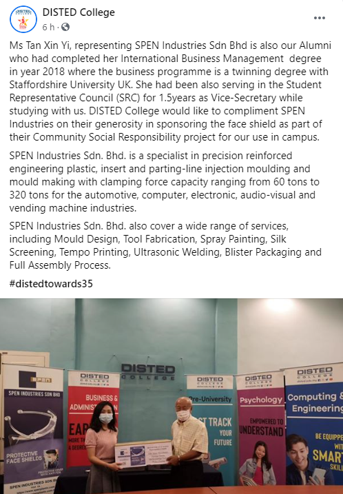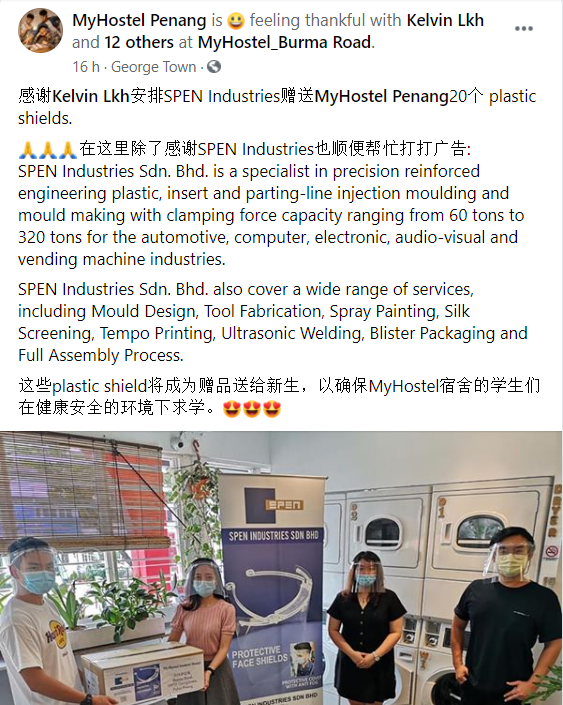During this harder period, our face shield are one of the responsible from SPEN to our society.